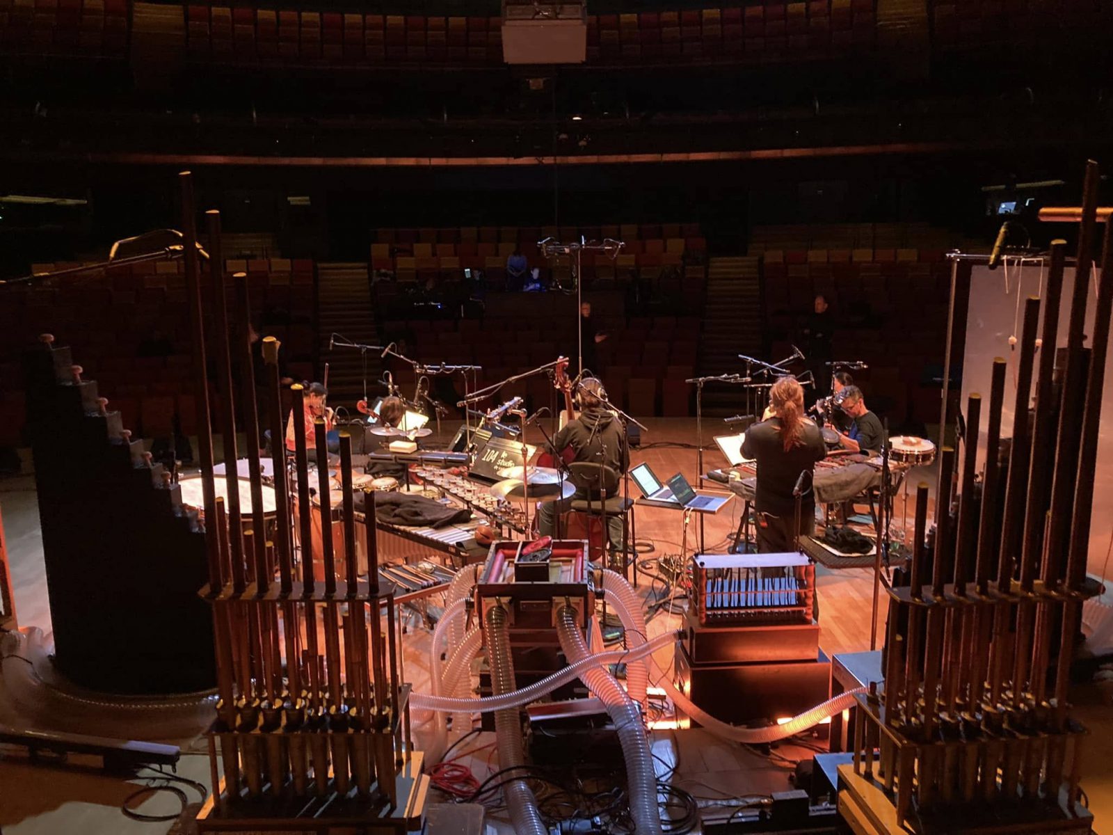 La coexistence de sons et figures musicales les plus divers est à l’origine de cette pièce, qui naît à partir d’un mélange de matières préexistantes, composées au cours des dernières années et enregistrées, en particulier, lors de la création de Ora, pièce composée à l’attention de Hanatsu en 2023-24. Le long travail réalisé autour de cette pièce est à l’origine de ce dialogue à distance, à l’aveugle, qu’est Lingering With Strange Strangers, dans lequel j’ai retrouvé des musiques familières comme si je les avais oubliées. Cette pièce nouvelle intègre dans un tout symphonique, cohérent ou incohérent peu importe, l’autre qui m’échappe, que je connais, mais qu’enfin je ne connais pas, et qui reste, malgré tout, toujours là comme il est. Il s’agit d’une étrange et inquiétante familiarité. C’est une métaphore d’une situation contemporaine, dans laquelle tout semble s’échapper et la seule certitude reste dans le contact avec des choses familières et en même temps étranges et étrangères, qui peuvent disparaître d’un moment à l’autre. Cette situation les rend fortes et nécessaires en même temps. Ainsi, la composition de cette pièce n’est qu’un exercice de persistance et d’observation rigoureuse des sons et de leurs marges ; c’est aussi une histoire qui progressivement évapore.